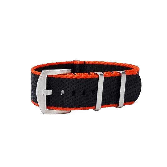 Masar NATO Nylon Nero / Arancione / Fibbia Satinata - Cinturino Orologio - Uomo