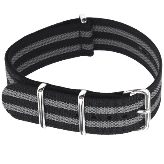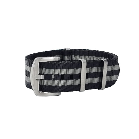Cinturino NATO Masar James Bond - Nero Grigio - Tessuto in nylon G10 - Fibbia lucida