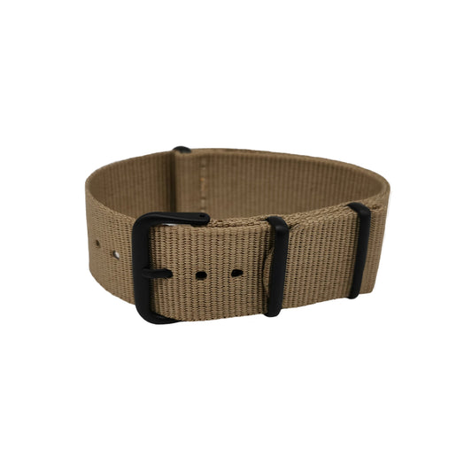 Cinturino NATO Masar 16 mm in nylon color cachi / fibbia nera - Morbido - Orologi leggeri per uomo e donna - Spessore 1 mm