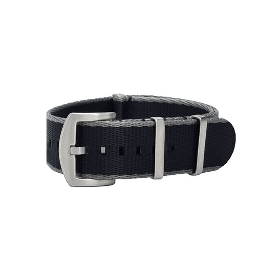 Masar NATO Nylon Grigio / Nero / Fibbia Satinata - Cinturino Orologio - Uomo