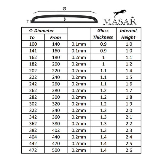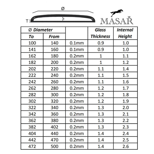 Masar Ø 240mm a 330mm - Spessore 2,0mm - Vetro minerale per orologio - Per orologio e barometro convesso a cupola - 1 pz