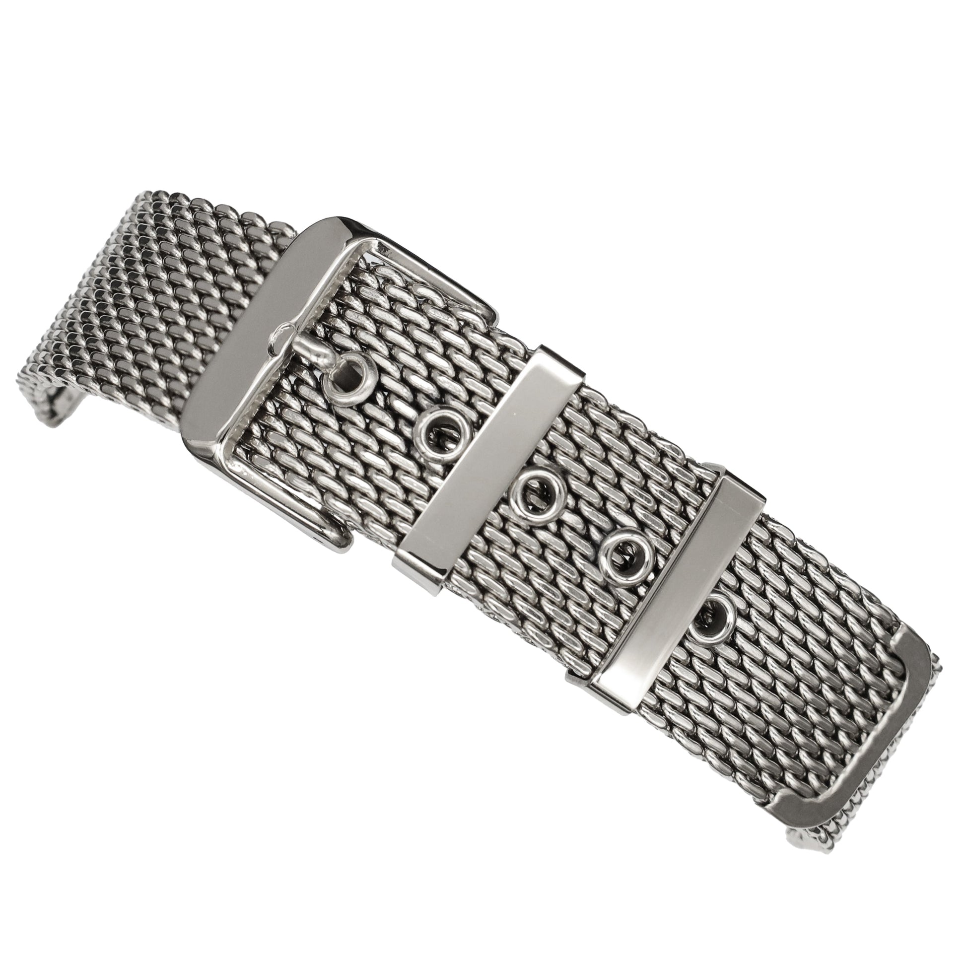 Masar BiG Mesh Ø 1mm Fibbia ad ardiglione - Cinturino per orologio da uomo in maglia milanese - Universale - Argento / Argento