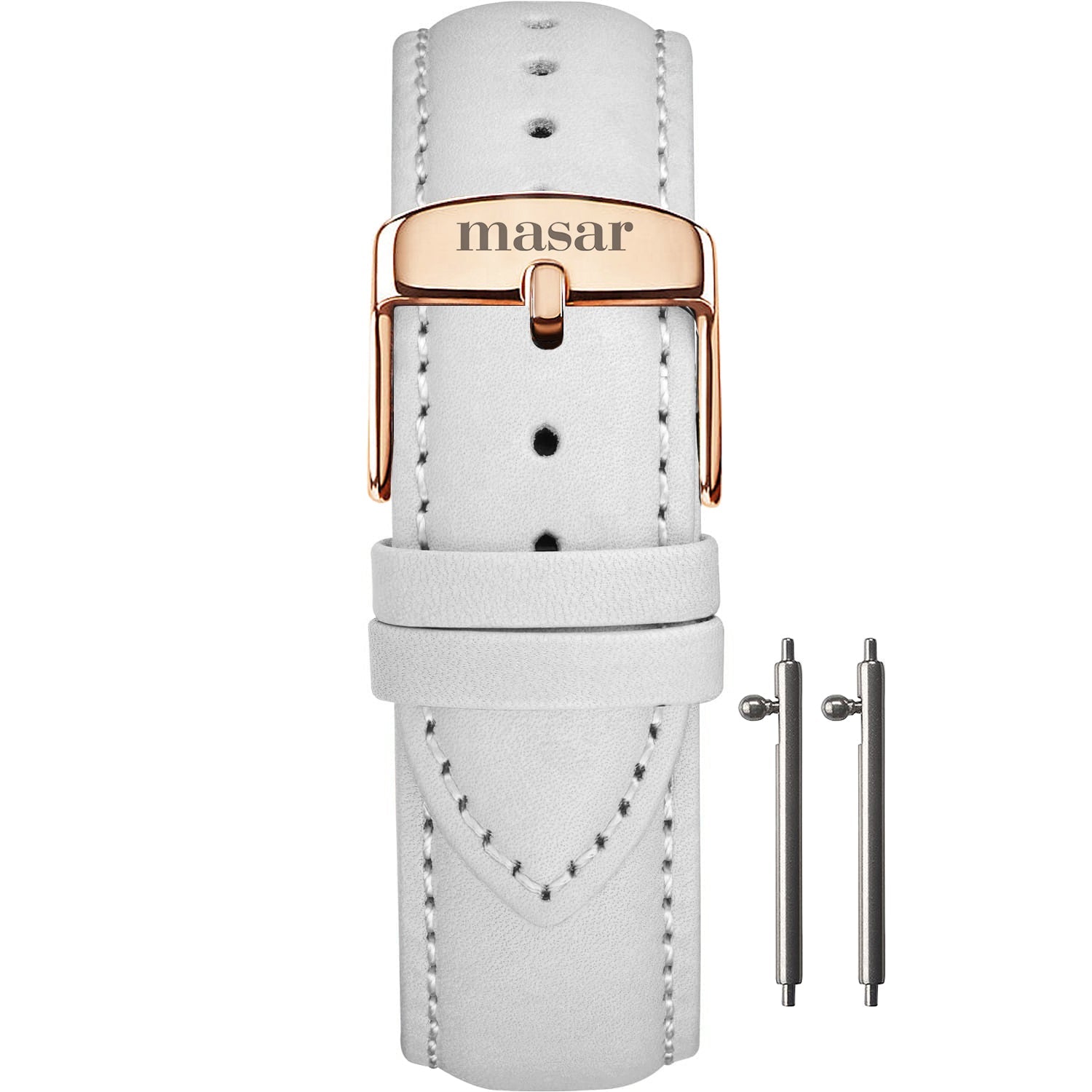 Masar 18mm Premium Quick Release - Pelle di vacchetta bianca - Fibbia in oro rosa