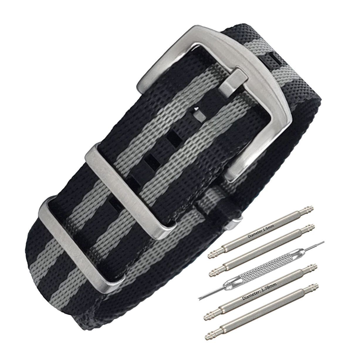 Masar NATO Nylon Grigio/Nero Satinato James Bond 007 – Cinturini per orologi da uomo