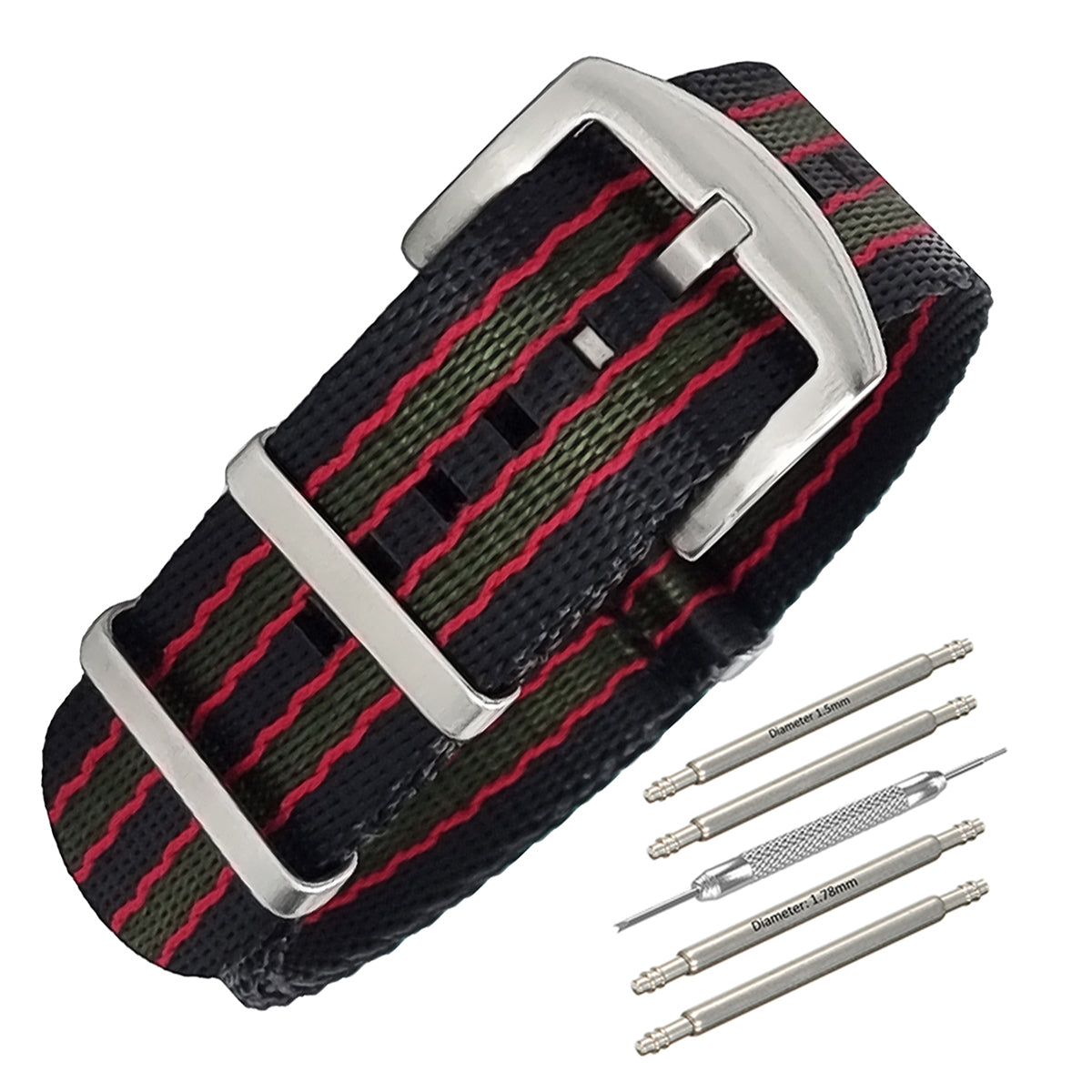 Masar NATO Nylon James Bond - Originale - Nero / Rosso / Verde / Fibbia Satinata - Cinturino Orologio - Uomo